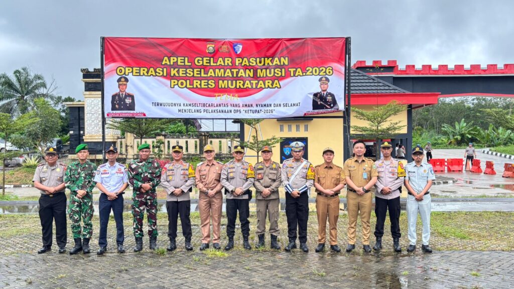 Muratara – Jasa Raharja Cabang Lahat melalui Penanggung Jawab (PA) Samsat Muratara turut menghadiri kegiatan Apel Gelar Pasukan Operasi Keselamatan Musi yang dilaksanakan di halaman Mapolres Musi Rawas Utara (Muratara) pada 2 Februari 2026. Kegiatan tersebut diikuti oleh unsur TNI, Dinas Perhubungan, Satpol PP, serta stakeholder terkait lainnya sebagai bentuk kesiapan pelaksanaan operasi keselamatan lalu lintas di wilayah hukum Polres Muratara.