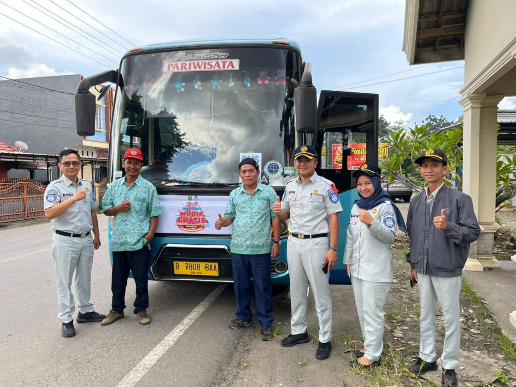 Memastikan keamanan dan keselamatan perjalanan bus Mudik Gratis Serentak Se-Sumsel Jasa Raharja Lahat aktif melakukan pengecekan perjalanan bus sembari berpesan agar senantiasa mengutamakan keselamatan dalam berkendara bagi para crew bus.