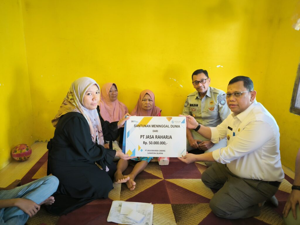 Pada kesempatan ini Kepala Cabang Jasa Raharja Sumsel, Mulkan beserta PJ Walikota Palembang menyampaikan rasa duka cita yang mendalam atas musibah kecelakaan yang terjadi. Sekaligus menyampaikan hak santunan untuk korban meninggal dunia kepada sebesar Rp 50 juta sesuai PMK No. 16 Tahun 2017 yang di berikan melalui mekanisme transfer ke rekening ahli waris yaitu istri korban yang bernama Sri Rahayu yang berdomisili di JL Mojopahit Jakabaring.
